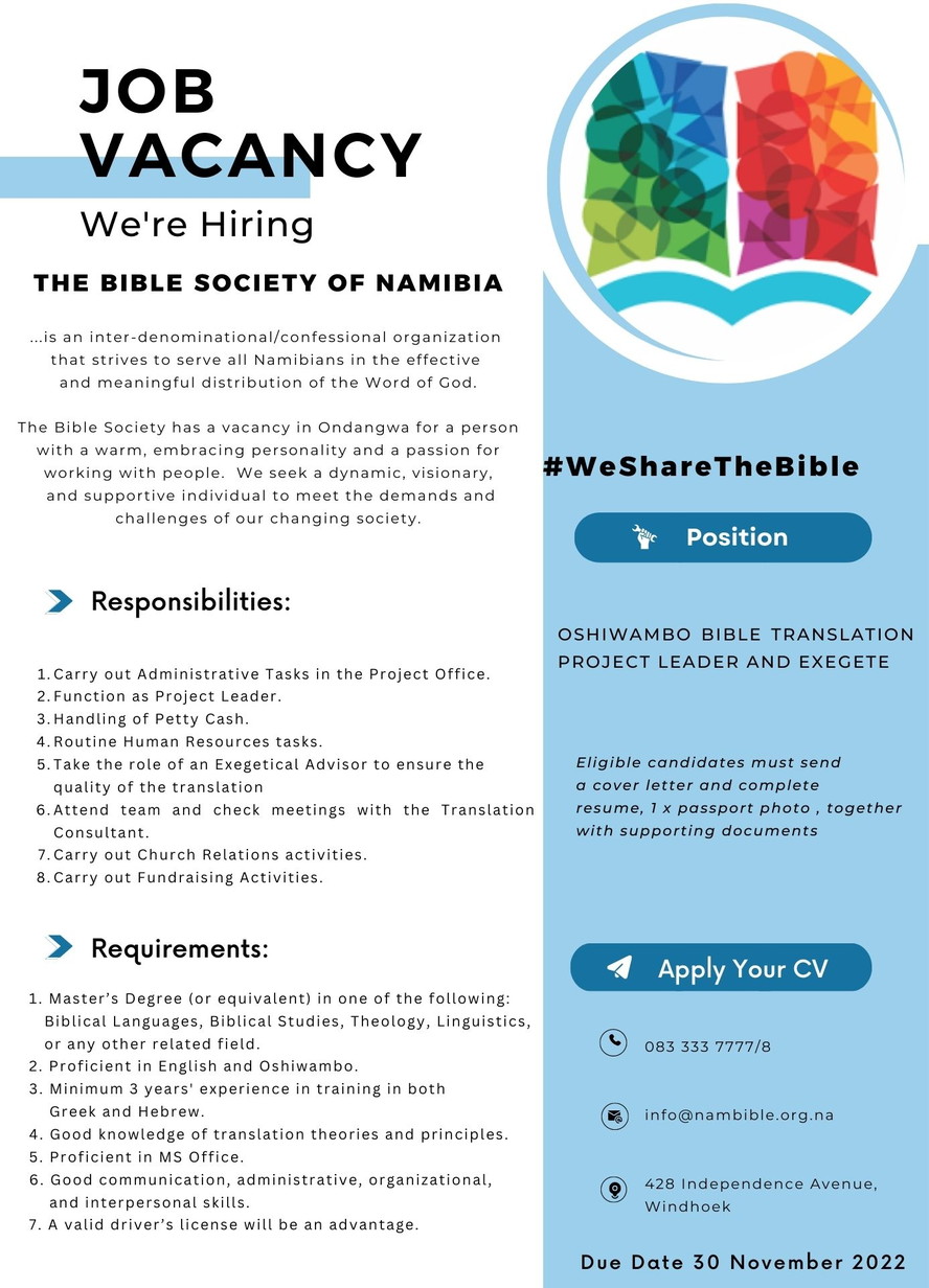 CLICK HERE to e-mail Bible Society: info@nambible.org.na    Call: 083 333 7777