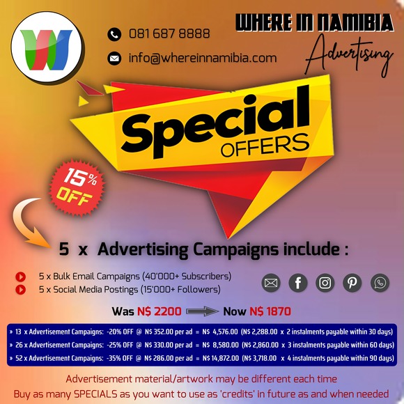 CLICK HERE to email Mercure Hotel Windhoek: reservations.namibia@accor.com       Call: 061 - 296 8000