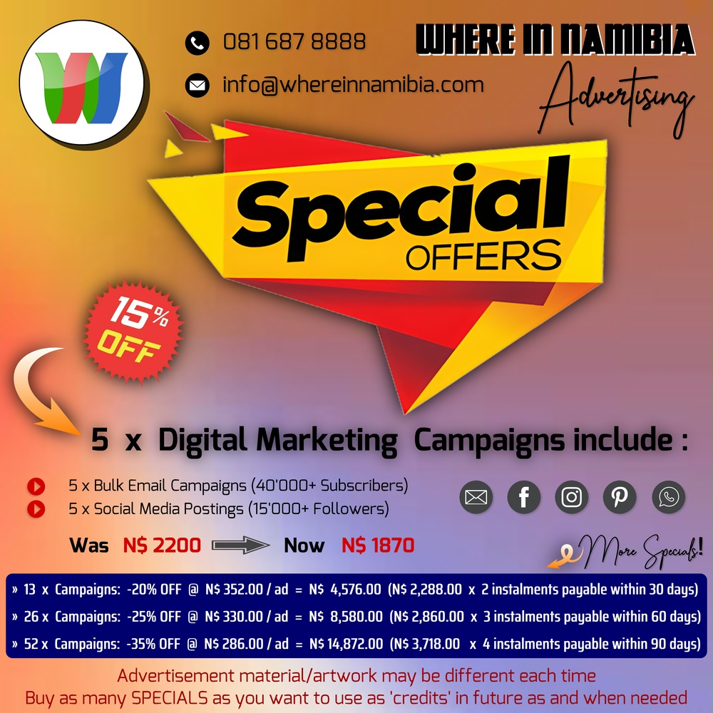 Tel: +264 81 687-8888, Email: info@whereinnamibia.com, Web: https://whereinnamibia.com |