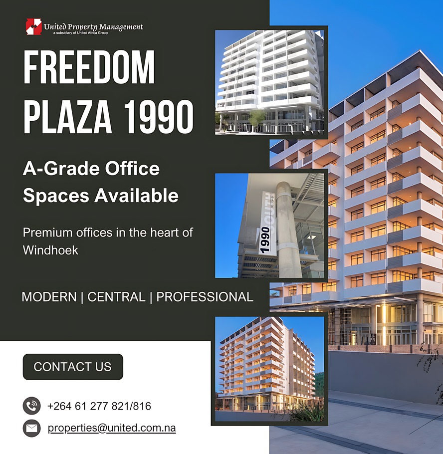 Discover premium A-grade office spaces at Freedom Plaza 1990, located in the vibrant heart of Windhoek.