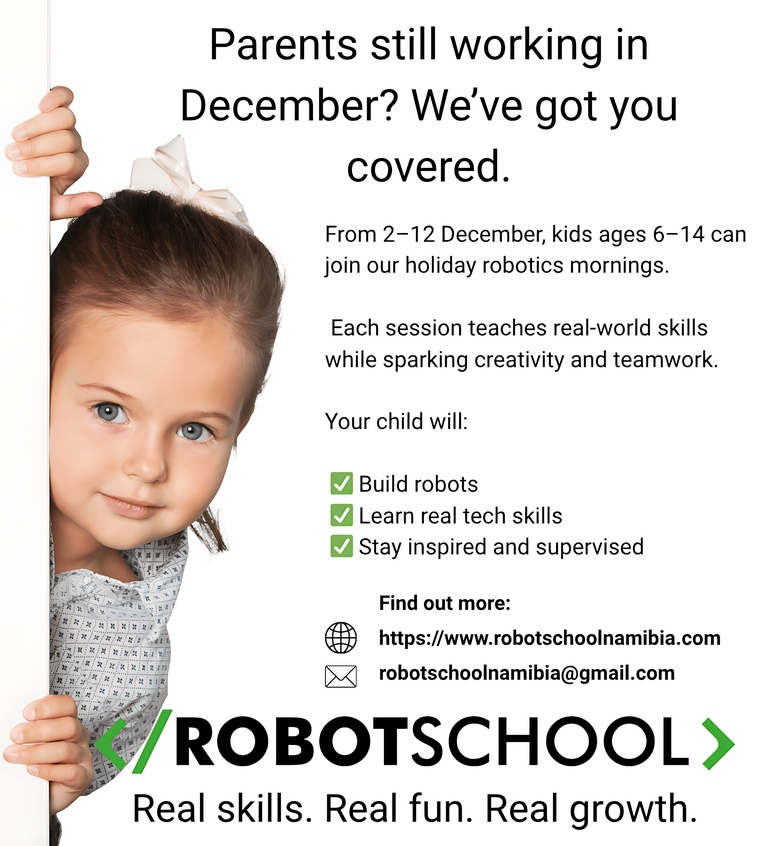 CLICK HERE to visit the Website of Robot School Namibia: https://www.robotschoolnamibia.com