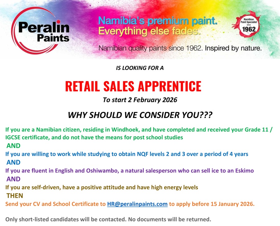 CLICK HERE to email your CV to Peralin Paints: hr@peralinpaints.com