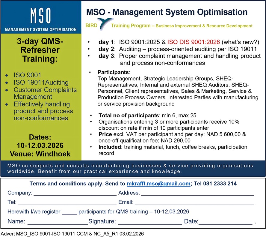 CLICK HERE to email about QMS Refresher Training: mkrafft.mso@gmail.com               Call:  081 233 3214