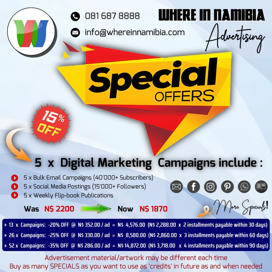 Tel: +264 81 687 8888, Email: info@whereinnamibia.com, Web: https://whereinnamibia.com |