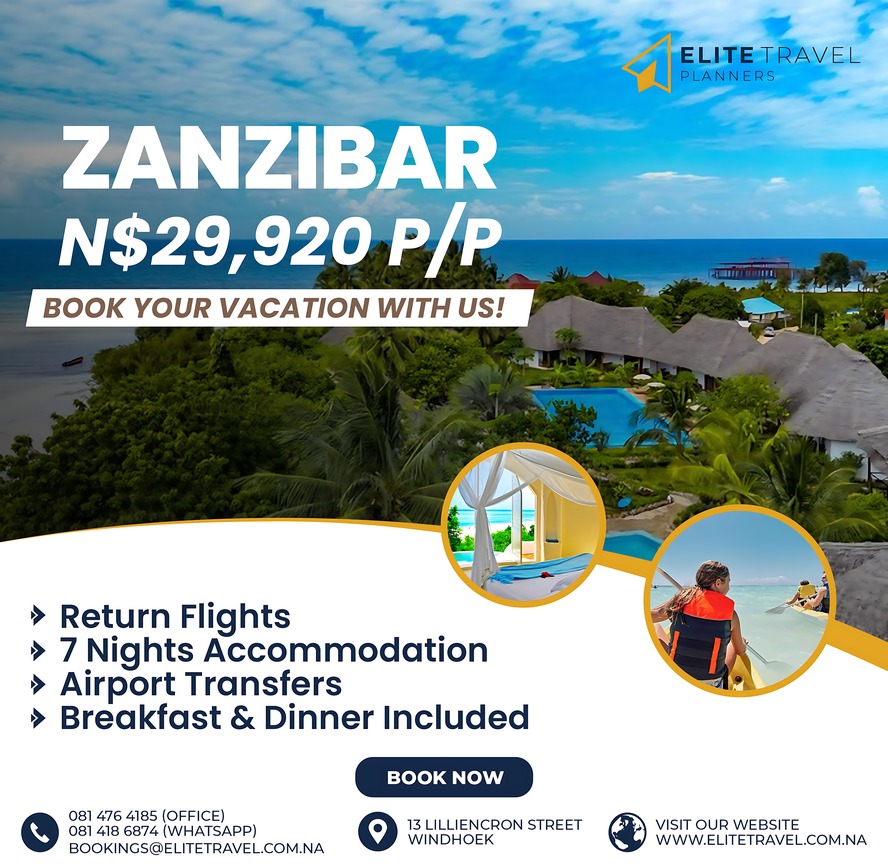 CLICK HERE to email Elite Travel Planners: bookings@elitetravel.com.na                Call: 081 476 4185 (Office)